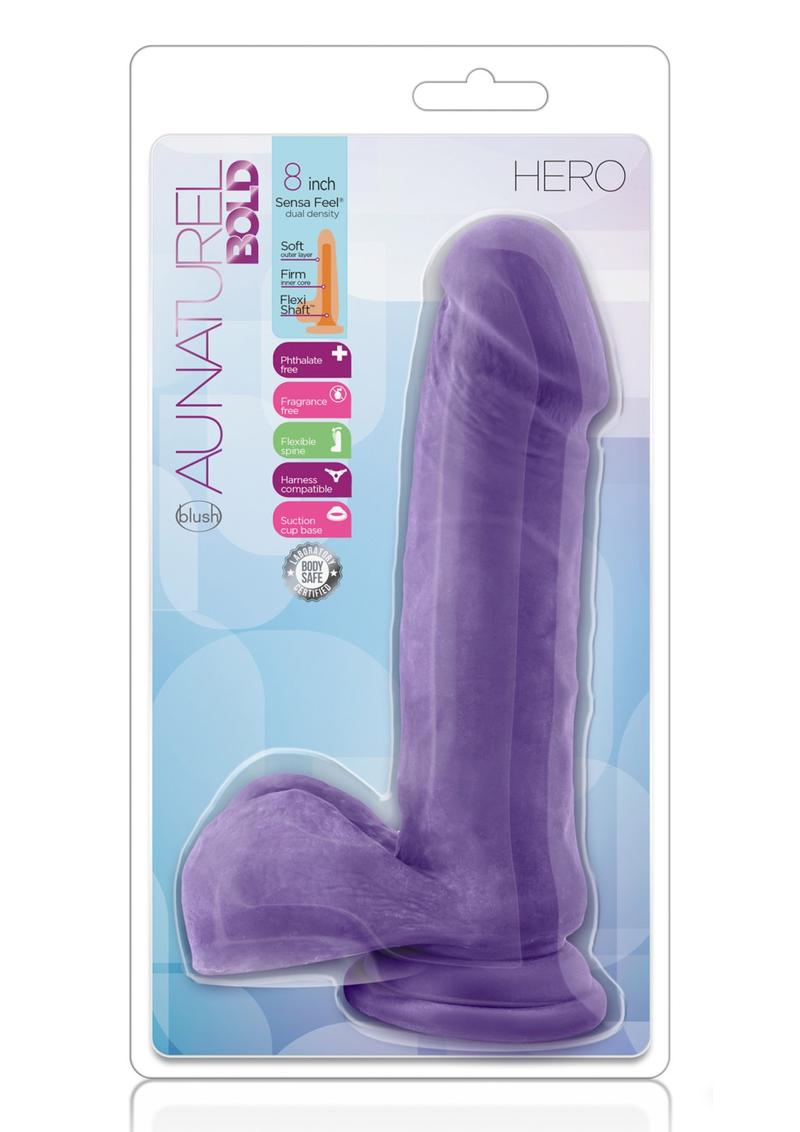 How BOLD are you feeling today? The Au Naturel Bold Hero lets you explore your desires, with its ultra-realistic Sensa Feel layers. Hero's soft, yet rigid and erect form is enhanced by FlexiShaftb" technology. Every detail, from firmness to skin & vein texture, is carefully crafted for maximum lifelike effectb all for your pleasure. Hero features a girthy shaft, a subtle ridge, and large balls. With a strong suction cup base, Hero will stick to almost any smooth surface and is harness compatible. Made of premium TPE, Au Naturel Bold toys are body safe, phthalate-free, and easy to clean.