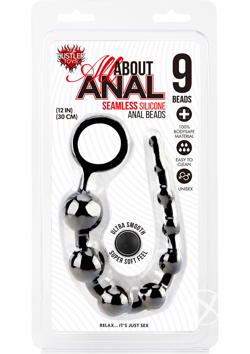 The All About Anal collection now features Silicone Anal Beads with 9 balls for an exciting adventure in anal play! Made of smooth silicone, each bead is a graduated size for the ultimate pleasure. Available in sleek black, these anal beads are perfect for men.