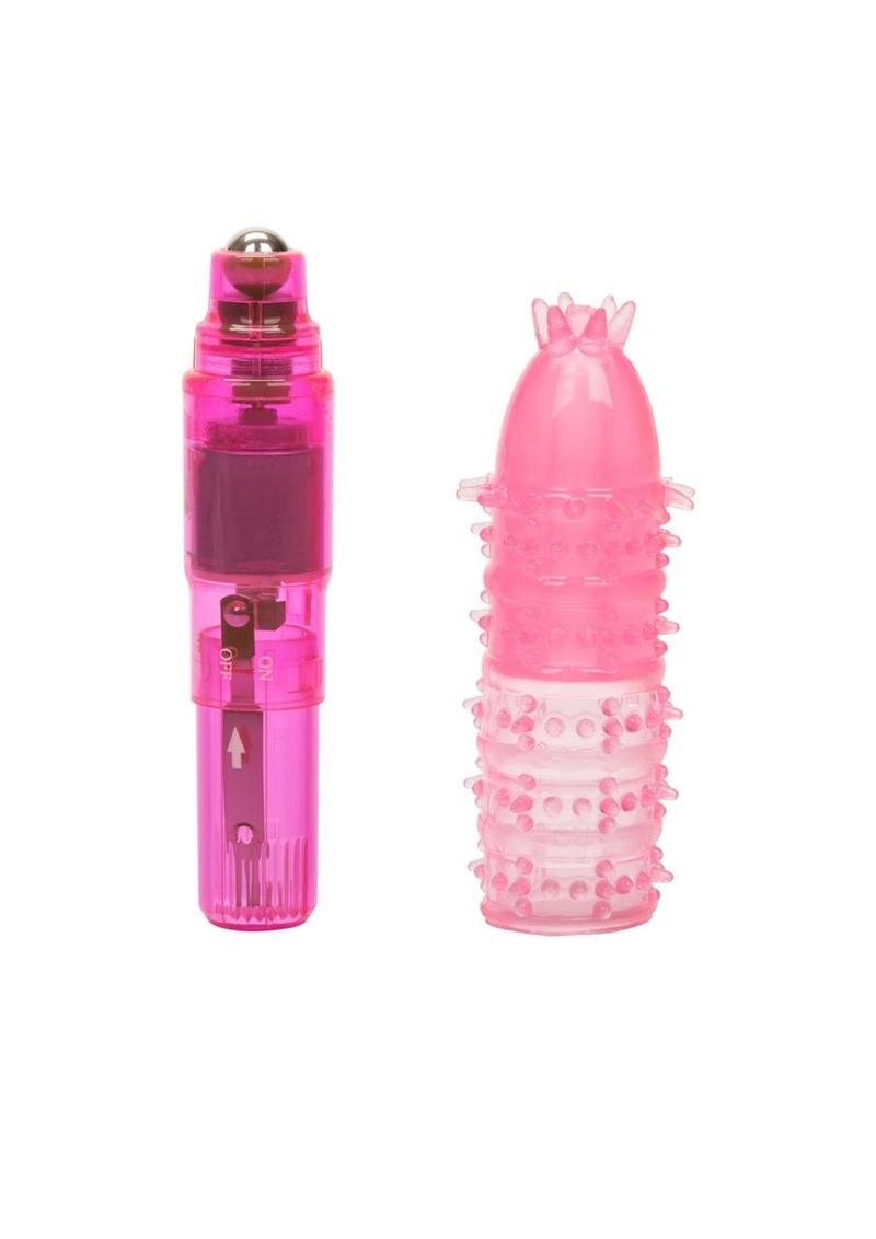 Dual speed massager with rolling magnetic ball and hygienically superior sleeve. Improves circulation and enhances sexual experiences. 1 AA battery.